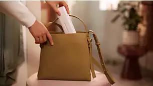 Potovalno torbico smo preoblikovali, zato je dovolj kompaktna, da jo lahko shranite v torbo, in dovolj trpežna, da bo zobni ščetki Philips Sonicare vso pot zagotavljala ustrezno zaščito. Poleg zaščite zobne ščetke v sebi priročno hrani tudi dve glavi ščetke. Zato se lahko brezskrbno odpravite kamor koli.