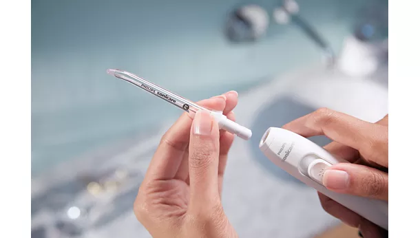Za redno čiščenje zob uporabljajte standardni nastavek, ki z enim curkom vode odstranjuje ostanke hrane in temeljito očisti medzobne prostore.