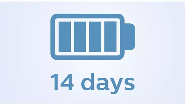 Življenjska doba baterije traja do 14 dni, zato lahko ščetko dolgo uporabljate brez polnjenja.