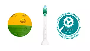 Prizadevamo si za zmanjšanje naše uporabe plastike na osnovi fosilnih goriv v naših izdelkih. Zato je 70 % plastike, ki sestavlja to glavo ščetke, na biološki osnovi.