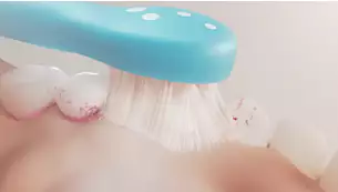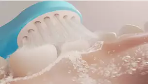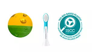 Lahko ste prepričani, da bo vašemu otroku prijetno med razvijanjem zdravih navad pri ščetkanju in preprečevanju nastanka kariesa. Glave ščetke Philips Sonicare For Kids imajo gumijasto prevleko za nežnejši in prijetnejši občutek v ustih ob stiku z lici in dlesnimi.