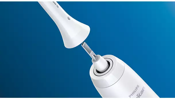 Glave ščetke Philips Sonicare For Kids enostavno pritrdite in snamete z ročaja, zato se zanesljivo prilegajo ter jih lahko enostavno vzdržujete in čistite.