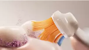 Vsak čisti na svoj način, zato smo to glavo ščetke zasnovali s poševnimi ščetinami, ki poskrbijo za odstranjevanje zobnih oblog, ne glede na vašo tehniko. Naša glava ščetke All-in-One poskrbi za vrhunsko čiščenje in odstrani do 20-krat več zobnih oblog kot ročna ščetka, tudi na težje dosegljivih predelih.